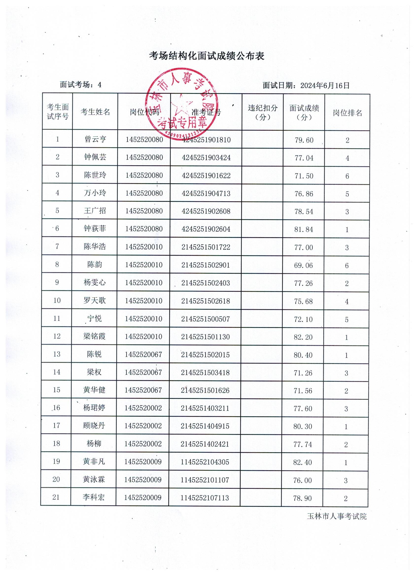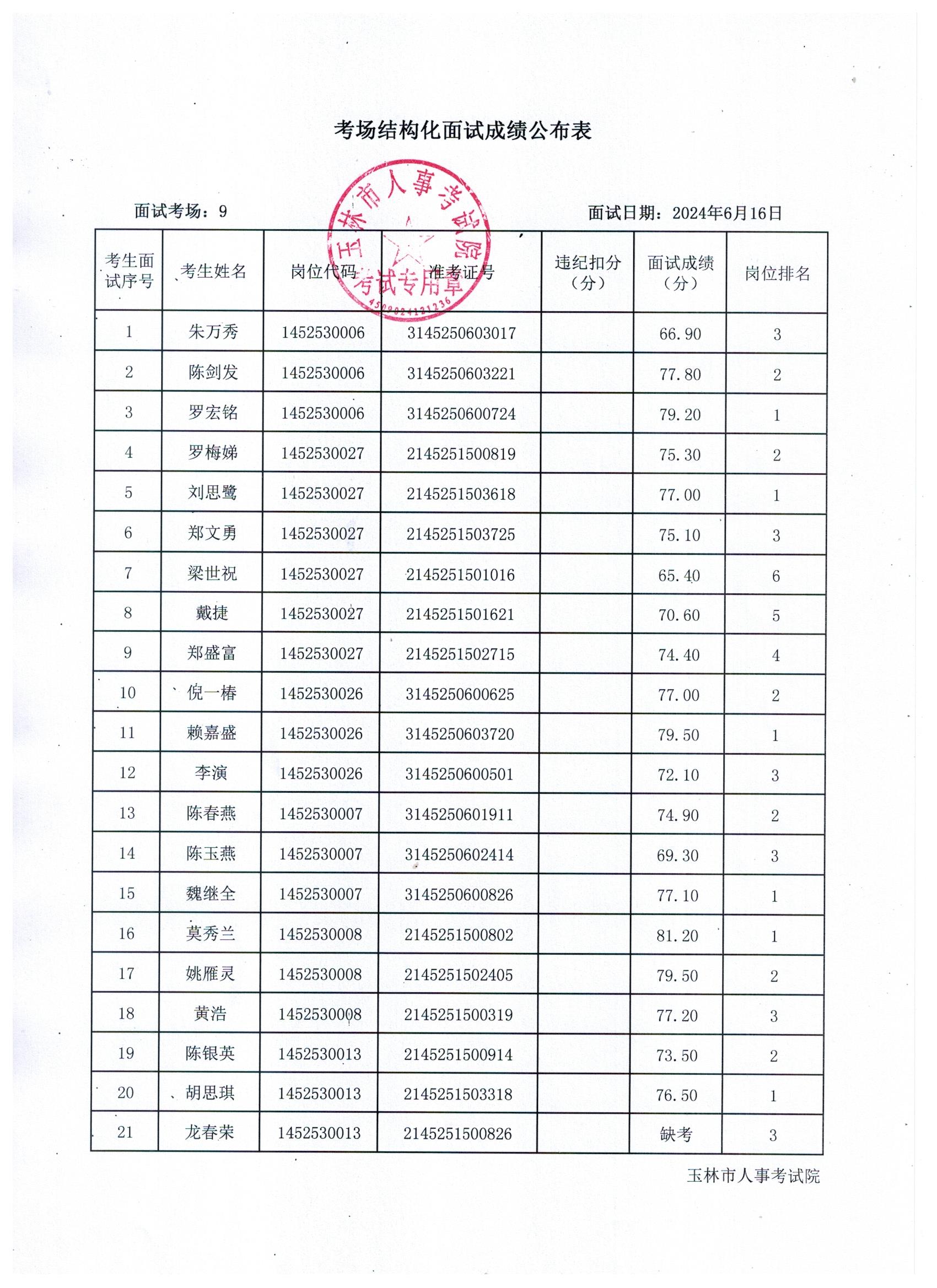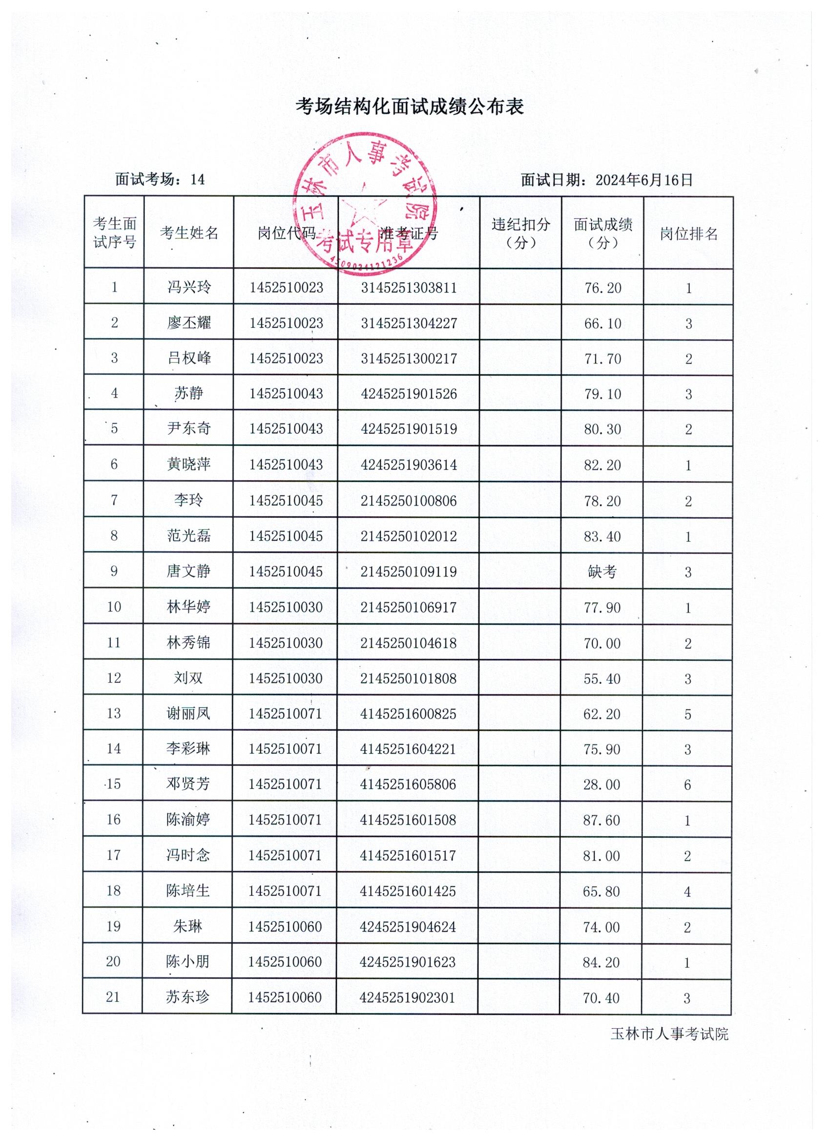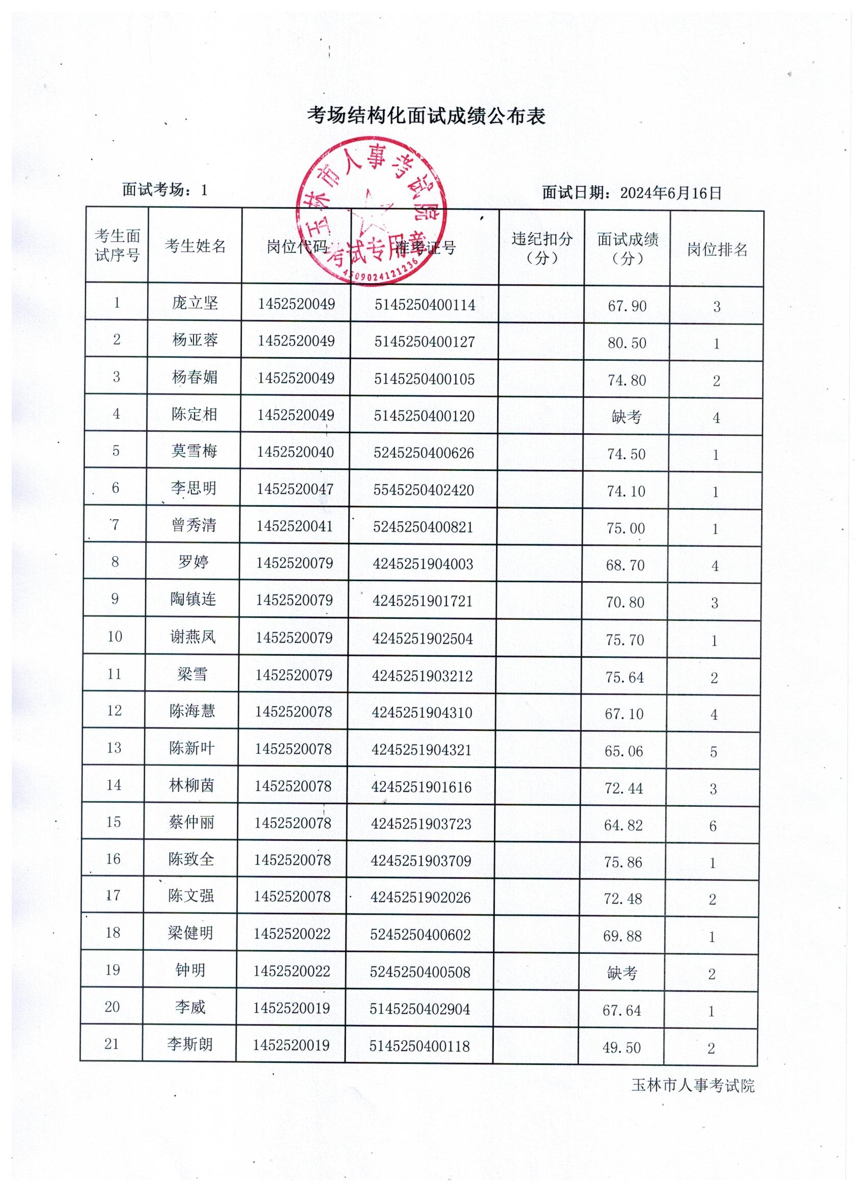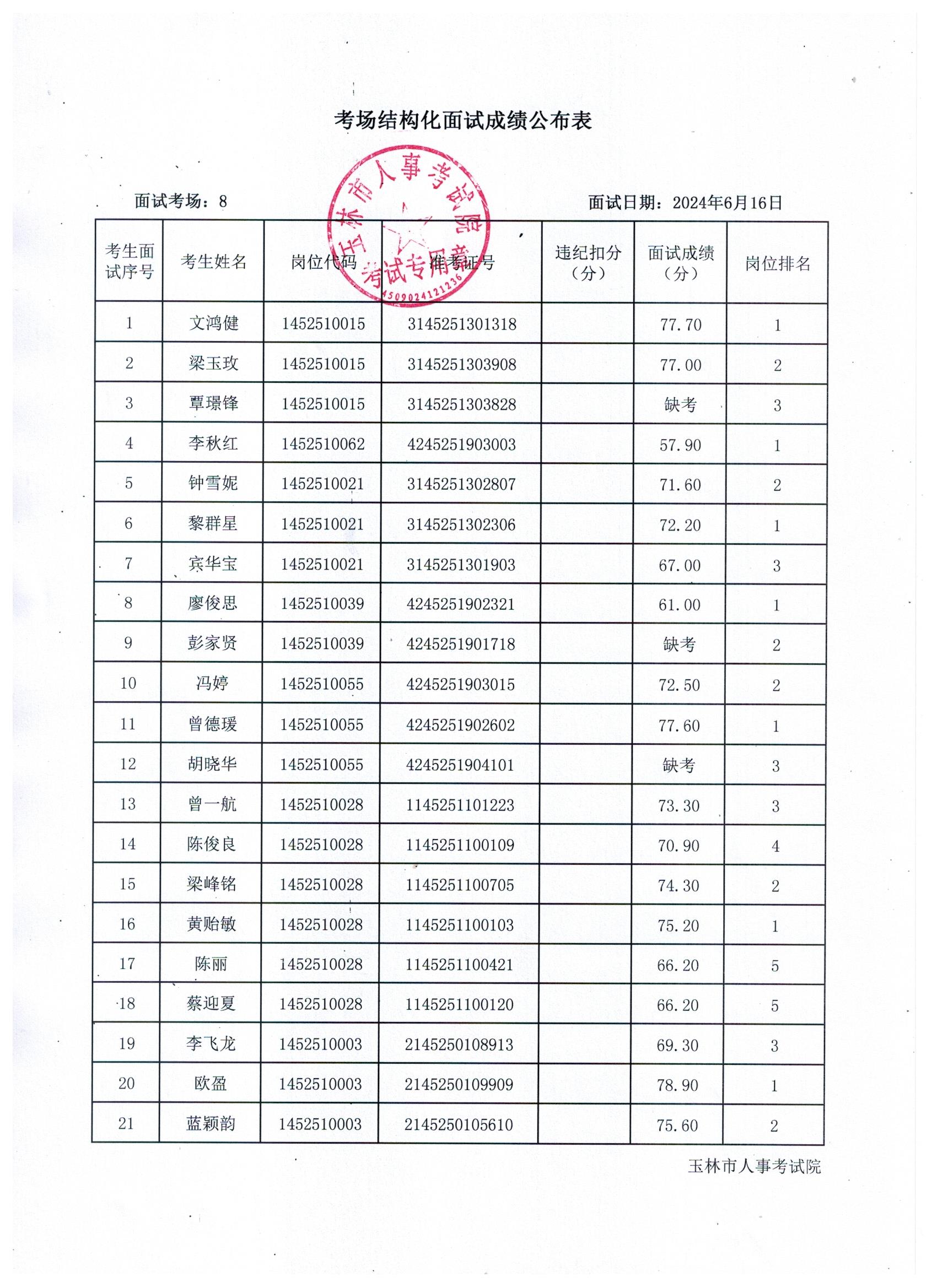 原文標題:2024年玉林市直(含玉州區(qū)、福綿區(qū)、玉東新區(qū))事業(yè)單位公開招聘人員面試成績公布(6月16日)