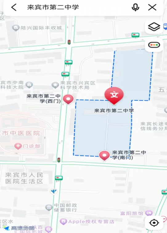 ▲來賓市第二中學交通指引圖(來賓市興賓區(qū)北四路62號)。