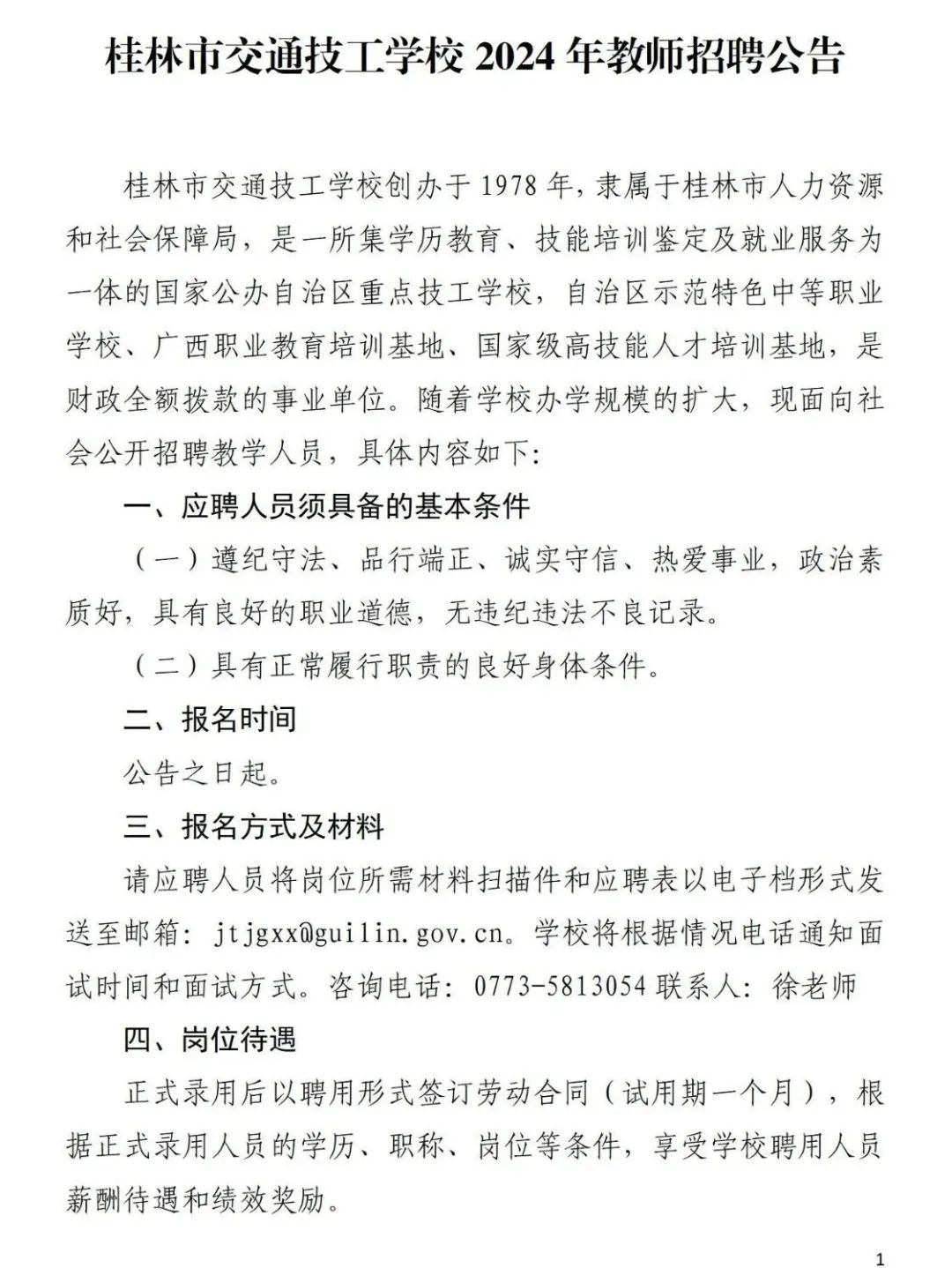 2024年桂林市交通技工學校教師招聘公告