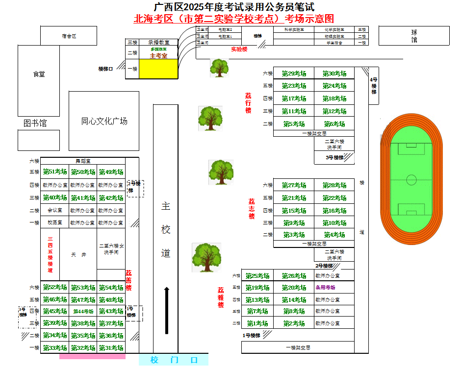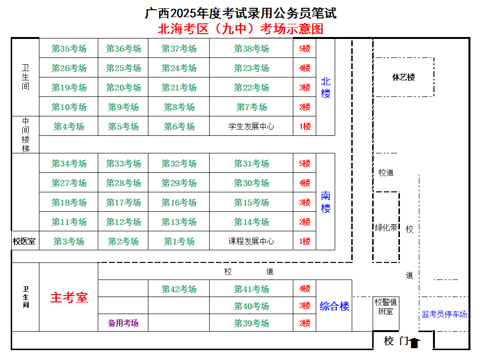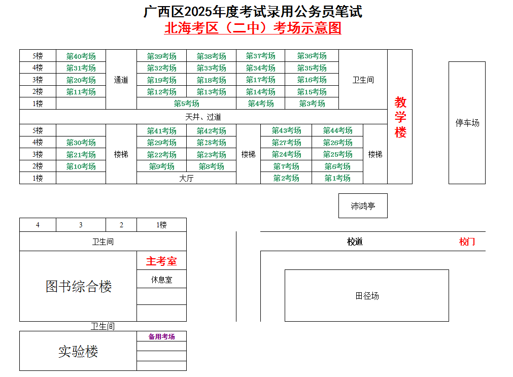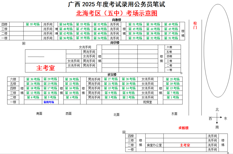 北海考區(qū)共設(shè)置5個(gè)考點(diǎn),具體考點(diǎn)考場布置分別如下: