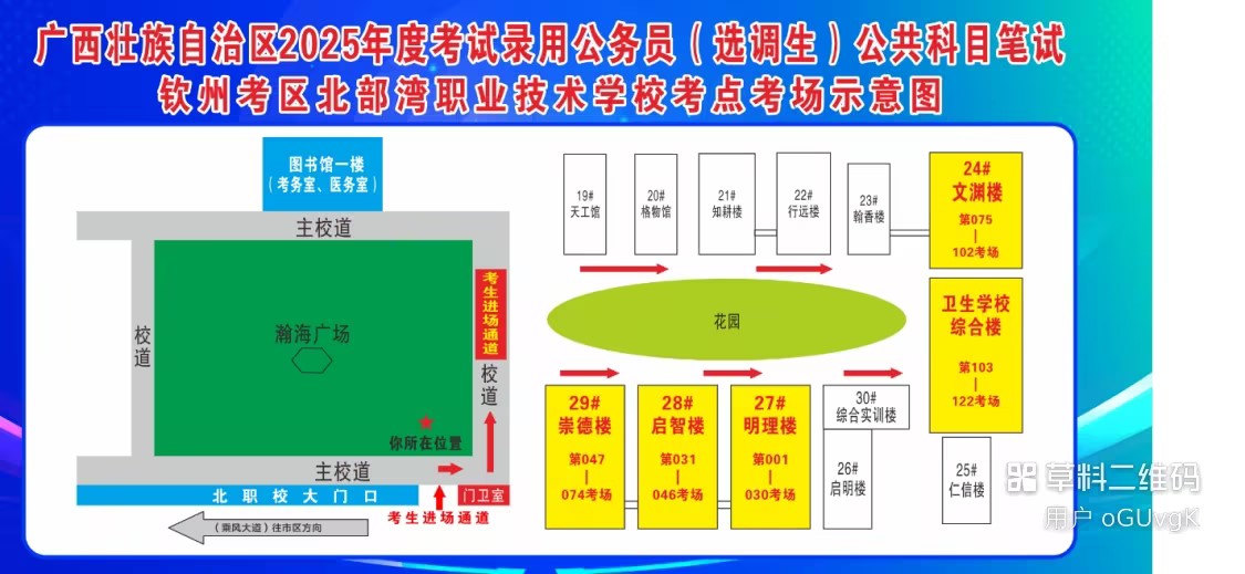 欽州考區(qū)共設(shè)兩個考點(diǎn),分別為北部灣大學(xué)考點(diǎn)、北部灣職業(yè)技術(shù)學(xué)??键c(diǎn)。(考點(diǎn)地址和具體考場安排請掃附后的二維碼查看)