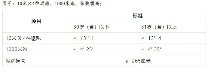 2.體能測評項目和標準按照《公安機關錄用人民警察體能測評項目和標準(暫行)》執(zhí)行。體能測評標準報考人員須參加全部三項體能測評,全部達標方為合格,如放棄一項則視為不合格,體能測評合格的方可進入下一環(huán)節(jié)。