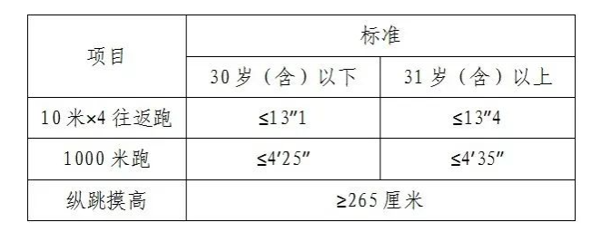 3.體能測評項目和標(biāo)準(zhǔn)按照《公安機關(guān)錄用人民警察體能測評項目和標(biāo)準(zhǔn)(暫行)》執(zhí)行。