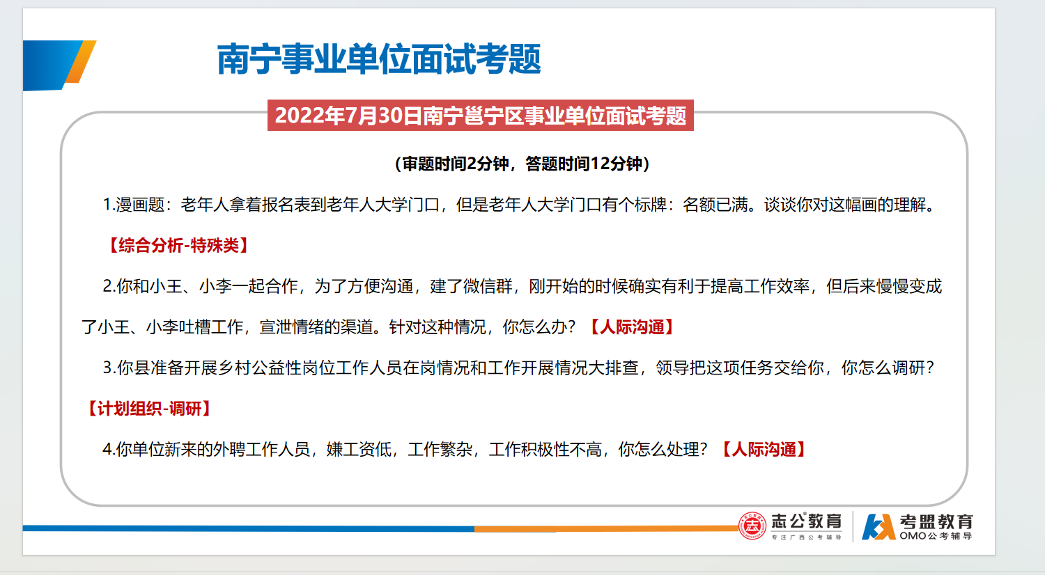 2025年廣西事業(yè)單位筆試成績即將發(fā)布,小志將按各地市、題型等與大家進(jìn)行分享廣西各地市考情考務(wù)等內(nèi)容,幫助各位考生提前掌握關(guān)鍵技巧系統(tǒng)提升應(yīng)試能力,高效備戰(zhàn)面試環(huán)節(jié)