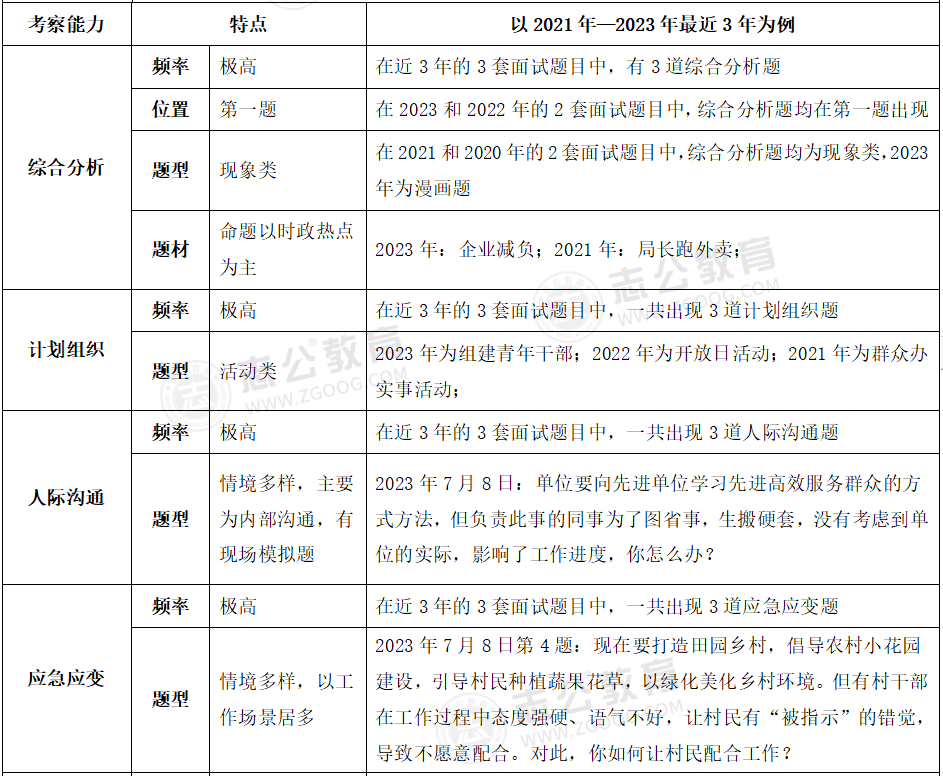 貴港事業(yè)單位面試主要采用結(jié)構(gòu)化面試形式;審題時(shí)間:2分鐘;答題時(shí)間:12分鐘;考查題量:4題為主??紕?wù)情況:考官不讀題、統(tǒng)一計(jì)時(shí)、超時(shí)會(huì)提醒??疾轭}型:綜合分析(極高)、計(jì)劃組織(極高)、人際溝通(極高)、應(yīng)急應(yīng)變(較高)、貫徹執(zhí)行(較高)、自我認(rèn)知(一般)。