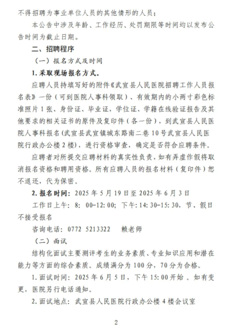 原文標題:武宣縣人民醫(yī)院2025年第一次公開招聘臨時聘用人員公告