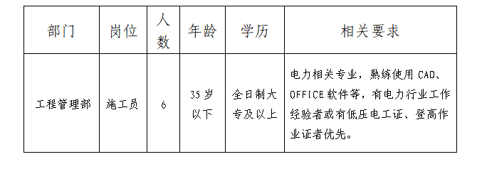 要求服務(wù)意識強(qiáng),辦事穩(wěn)重,作風(fēng)扎實(shí),服從工作安排、身體健康,具備崗位專業(yè)要求。具體招聘崗位及招聘條件如下表: