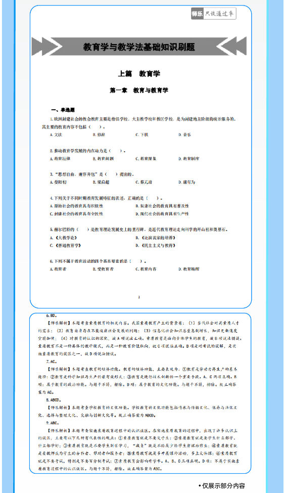 匹配考綱要求,精選50個核心考點:銘師組團(tuán)精研,基于考綱收錄《教育學(xué)與教學(xué)法基礎(chǔ)知識》《教育心理學(xué)與德育工作基礎(chǔ)知識》核心考點,重點突出,幫助考生學(xué)習(xí)記憶。