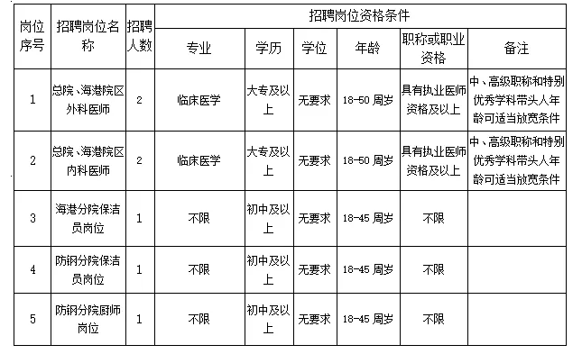 為了解決醫(yī)院人員緊缺狀態(tài),完善科室設置,進一步提升醫(yī)療服務水平,確保醫(yī)療安全,更好地滿足企沙工業(yè)園區(qū)各大企業(yè)及廣大人民群眾醫(yī)療服務需求,特面向社會招聘7名工作人員,具體如下: