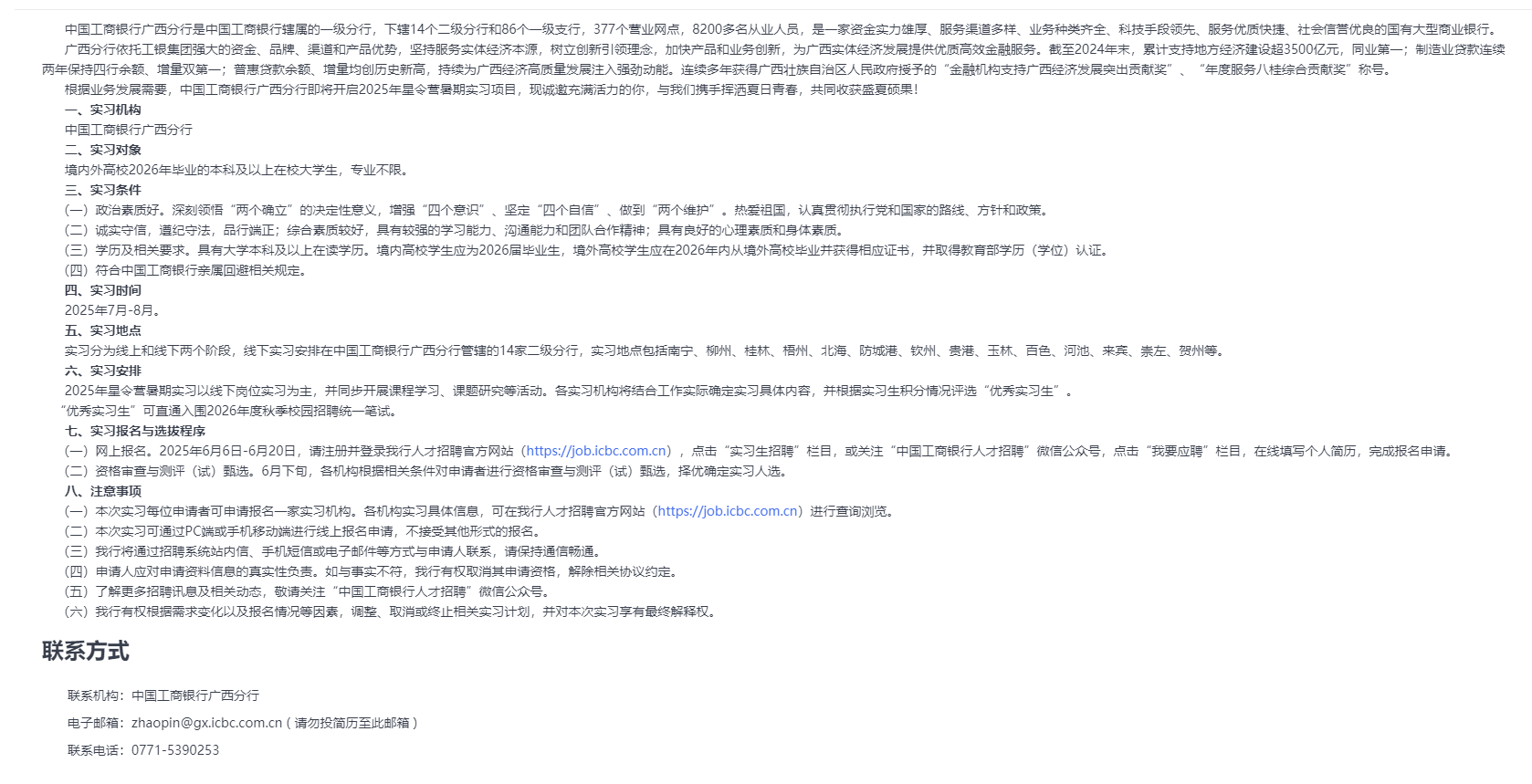 中國工商銀行廣西分行2025年星令營暑期實(shí)習(xí)公告