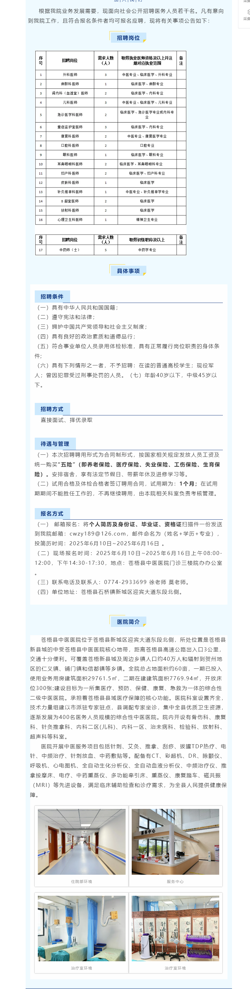 2025年蒼梧縣中醫(yī)醫(yī)院人才招聘公告