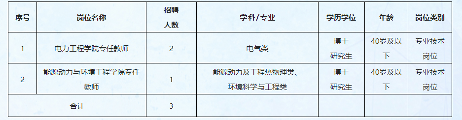 招聘政策和未盡事宜,可咨詢學(xué)校人事處及相關(guān)二級(jí)學(xué)院。人事處聯(lián)系人及電話:丘老師,0771-2212985;電力工程學(xué)院聯(lián)系人及電話:趙老師,0771-2212395;能源動(dòng)力與環(huán)境工程學(xué)院聯(lián)系人及電話:麻老師,0771-2212705。聯(lián)系方式僅供與博士人才聯(lián)絡(luò)使用,宣傳推銷(xiāo)及其他廣告勿擾。