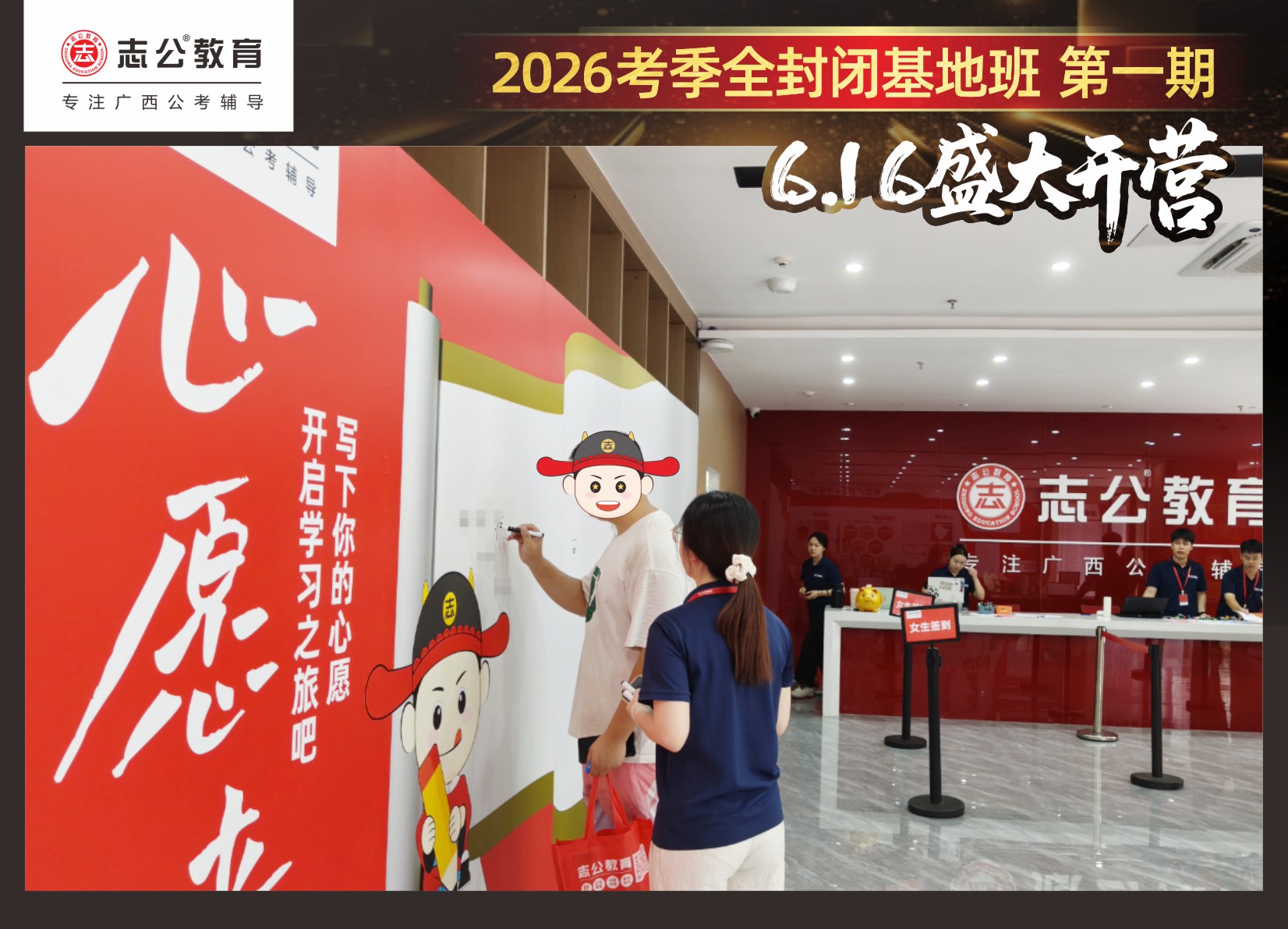 6月16日,志公教育基地班在萬眾翹首以盼中,正式拉開帷幕!來自各地的學(xué)員們,懷揣著夢想與憧憬匯聚于此,以“躍龍門”的非凡勇氣和“走紅毯”般的自信姿態(tài),鄭重地書寫下屬于自己的“上岸心愿”。在這場充滿儀式感與溫馨氛圍的啟程儀式中,開啟了新篇章。