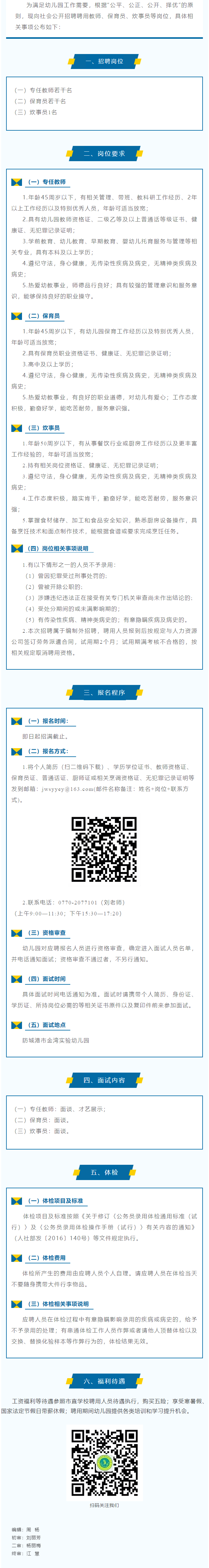 2025年防城港市金灣實驗幼兒園秋季學(xué)期聘用教師、保育員、炊事員崗位招聘公告