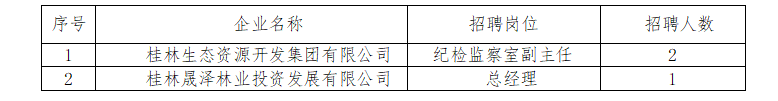 根據(jù)桂林生態(tài)資源開發(fā)集團有限公司經營管理和發(fā)展需要,現(xiàn)面向社會公開招聘集團本部及下轄子公司2個崗位人員,有關事項公告如下: