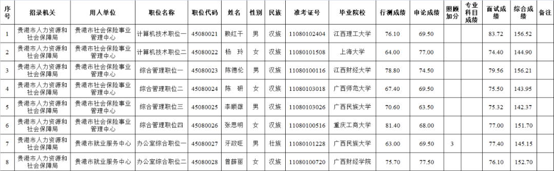 6.6 貴港市人力資源和社會(huì)保障局2025年度考試錄用公務(wù)員擬錄用人員名單