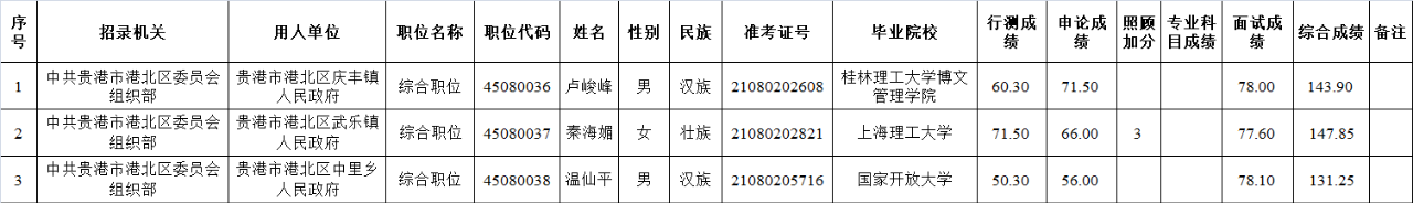 6.6 貴港市港北區(qū)2025年度考試錄用公務(wù)員擬錄用人員名單(一)