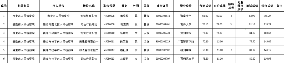 6.6 貴港中級(jí)人民法院2025年度考試錄用公務(wù)員擬錄用人員名單