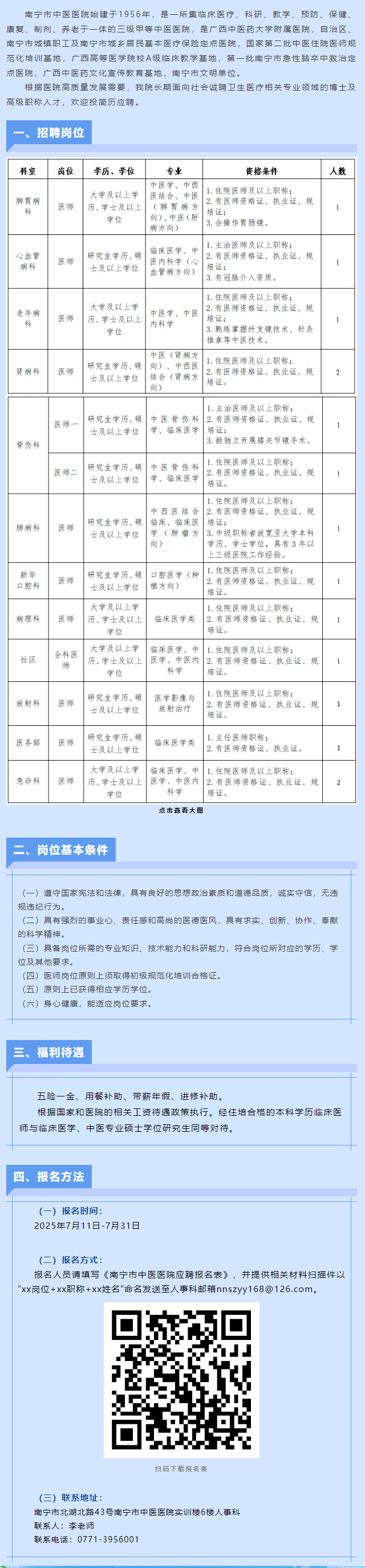 2025年南寧市中醫(yī)醫(yī)院人才招聘15人