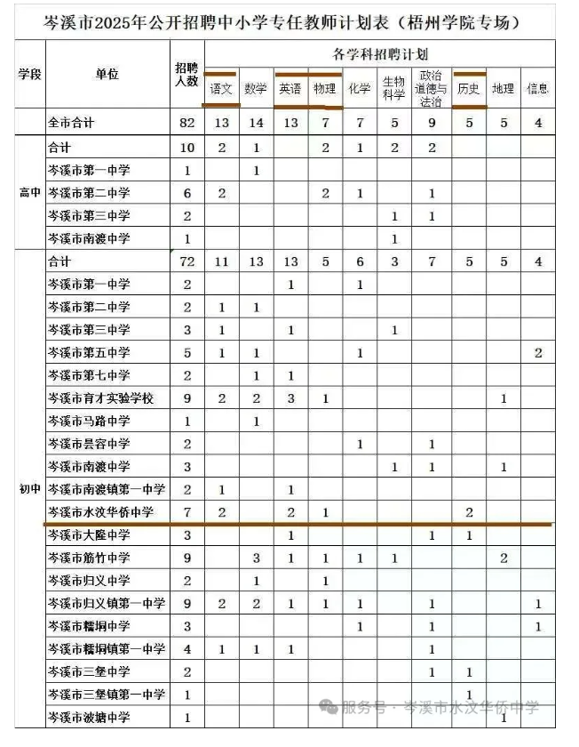 2025年岑溪市水汶華僑中學招聘7人