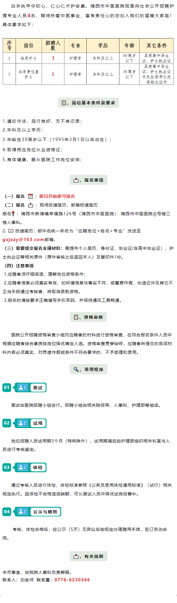 原文標題:靖西市中醫(yī)醫(yī)院2025年護理人才(第二批)招聘來啦