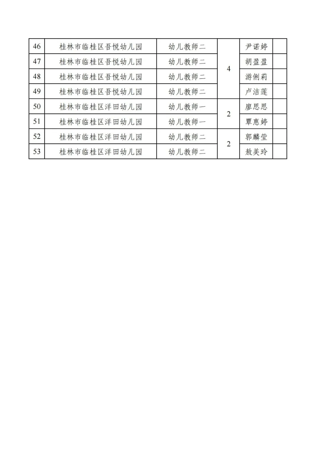 根據《桂林市2025年度公開招聘中小學教師公告》和《2025年桂林市臨桂區(qū)公開招聘中小學教師面試公告》規(guī)定,經網上報名審核、筆試,現(xiàn)場資格復審、面試等程序,現(xiàn)將2025年桂林市臨桂區(qū)公開招聘中小學教師進入考核人員名單予以公示,公示時間為2025年7月21日至25日。公示期間如有異議,請以書面形式并署真實姓名和聯(lián)系方式于7月25日前將反映材料送達臨桂區(qū)委教育工委辦公室或臨桂區(qū)教育局人事股。如實反映有關問題受法律保護。