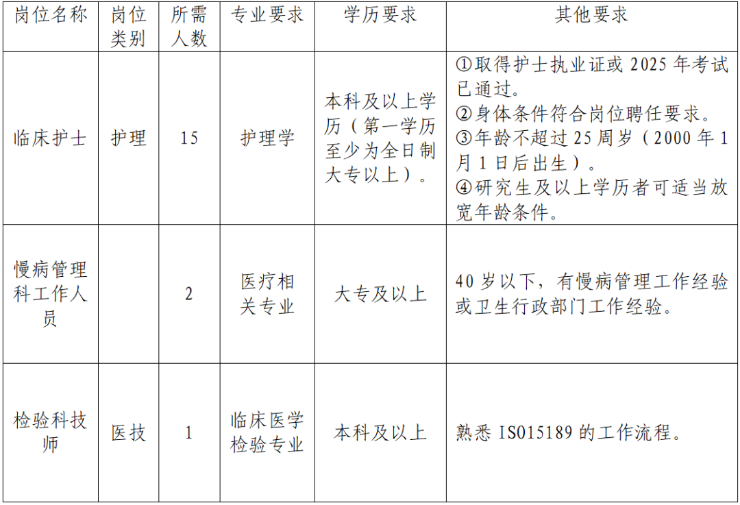 (一)報名。應聘者需在2025年9月21日前將個人電子簡歷及應聘所需佐證材料,包括但不限于畢業(yè)證(第一學歷和最高學歷)、學位證、執(zhí)業(yè)證(考試成績)、職稱證、進修結(jié)業(yè)證、專科護士培訓合格證、執(zhí)業(yè)資格考試成績單等打包發(fā)送至rsk7836669@163.com郵箱,報名材料以“姓名+專業(yè)+衛(wèi)技招聘”名字命名。