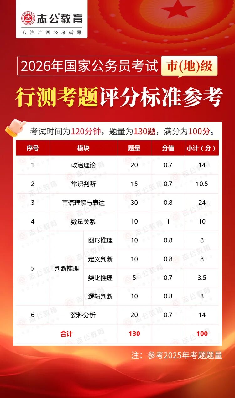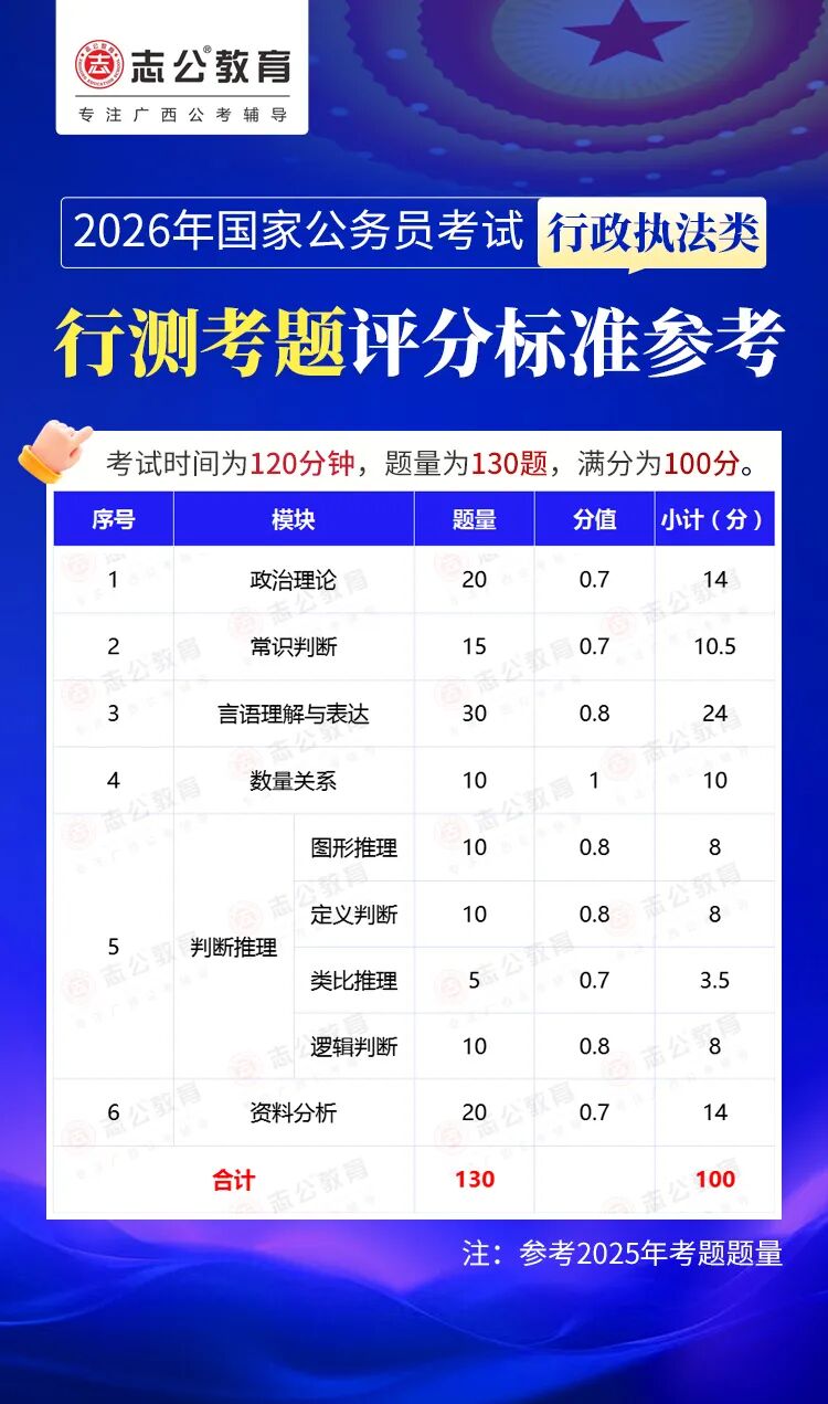 無(wú)論報(bào)名人數(shù)是否會(huì)增加,提升自身實(shí)力才是應(yīng)對(duì)2026年國(guó)考的關(guān)鍵。行測(cè)作為國(guó)考公共科目筆試的核心模塊,不僅分值占比高(通常為 100 分),更是考生之間拉開分差的關(guān)鍵戰(zhàn)場(chǎng)。它并非單純考查知識(shí)儲(chǔ)備,而是通過言語(yǔ)理解、判斷推理、數(shù)量關(guān)系、資料分析、常識(shí)判斷、政治理論六大板塊,綜合評(píng)估考生的信息處理速度、邏輯思維能力、應(yīng)急決策水平等綜合素質(zhì)。