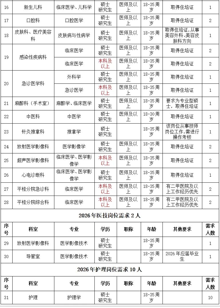 根據(jù)醫(yī)院發(fā)展規(guī)劃,招聘工作堅(jiān)持公平公正公開,堅(jiān)持德才兼?zhèn)?、人崗相適、擇優(yōu)錄取、雙向選擇的原則,2026年計(jì)劃引進(jìn)博士、碩士高層次人才及招聘工作人員共計(jì)50名(詳見(jiàn)附件:賀州市人民醫(yī)院2026年招聘需求信息)。