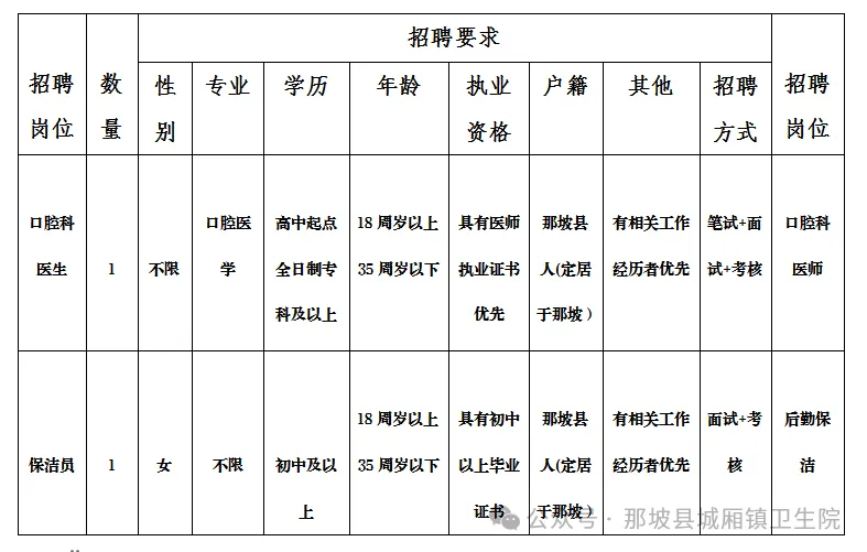 2025年那坡縣城廂鎮(zhèn)衛(wèi)生院公開招聘編外工作人員2人