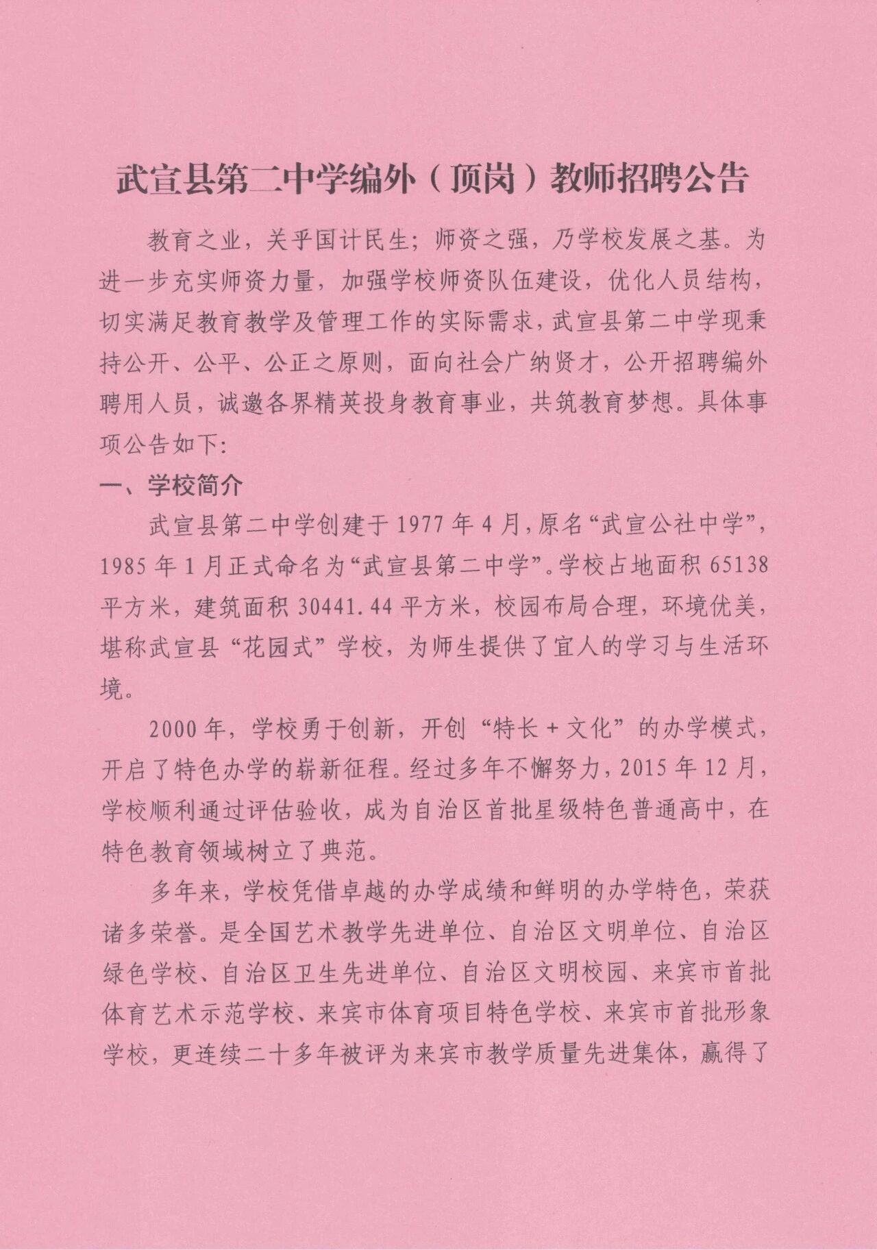 原文標(biāo)題:武宣縣第二中學(xué)編外(頂崗)教師招聘公告