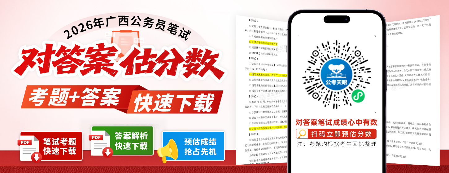 2026年廣西區(qū)考《行測》考題回憶版發(fā)布!在線估分+答案解析一鍵下載
