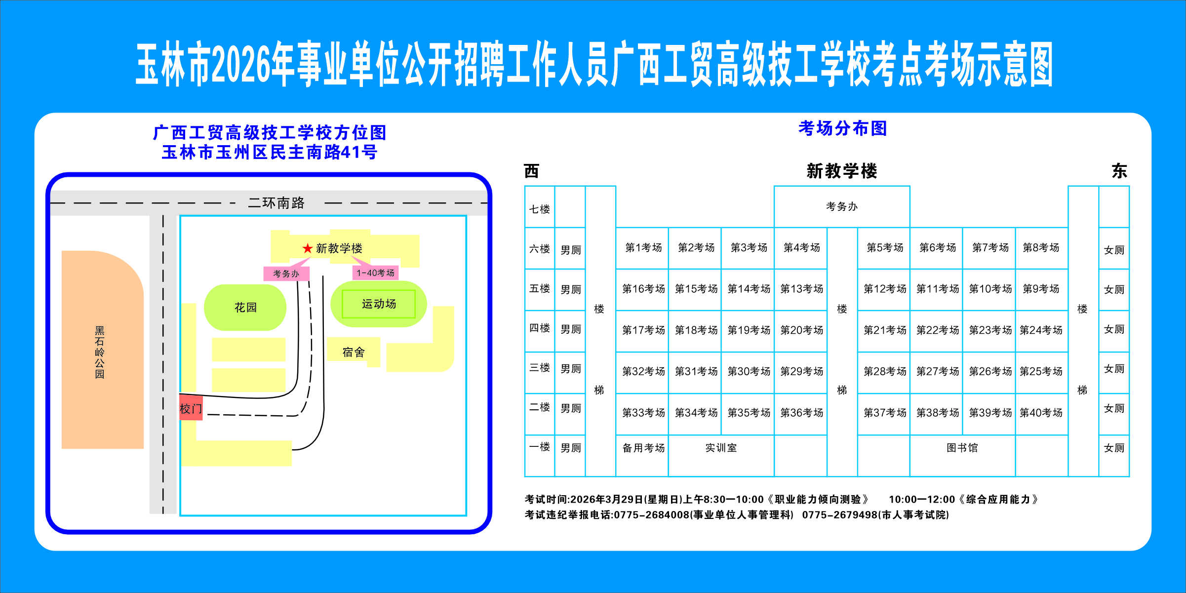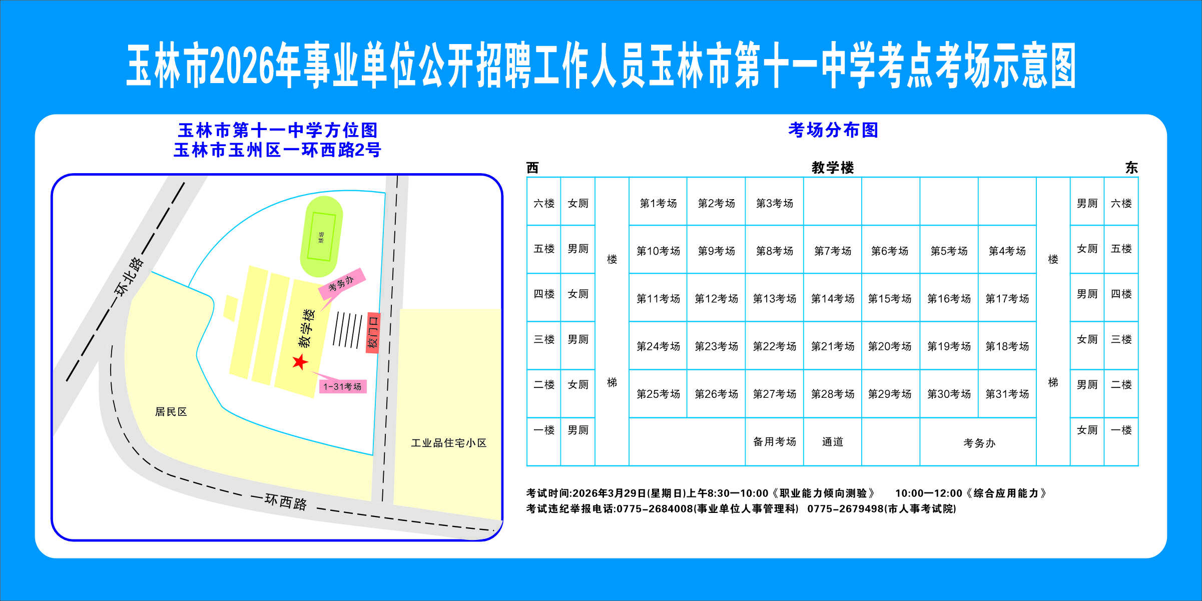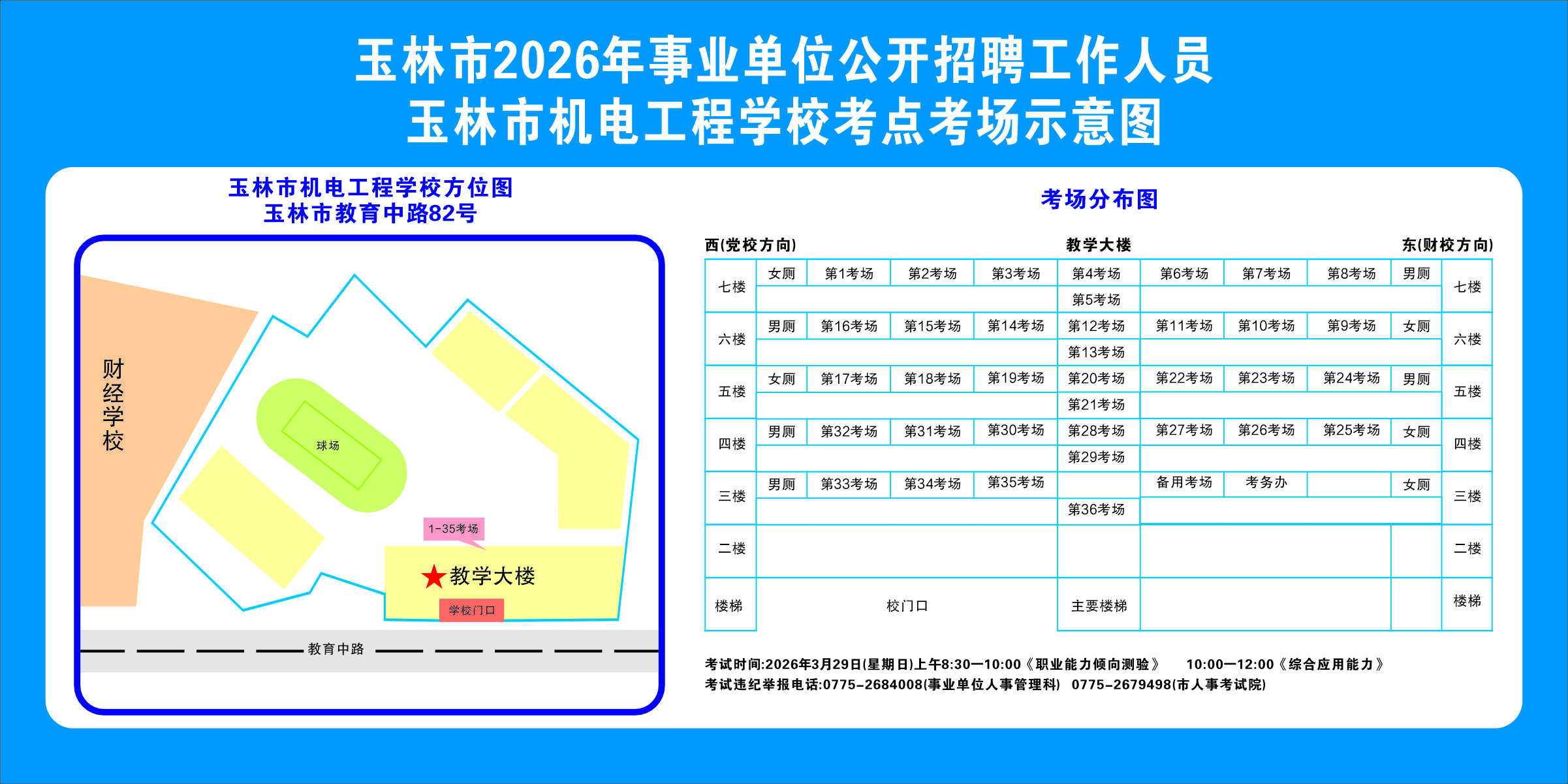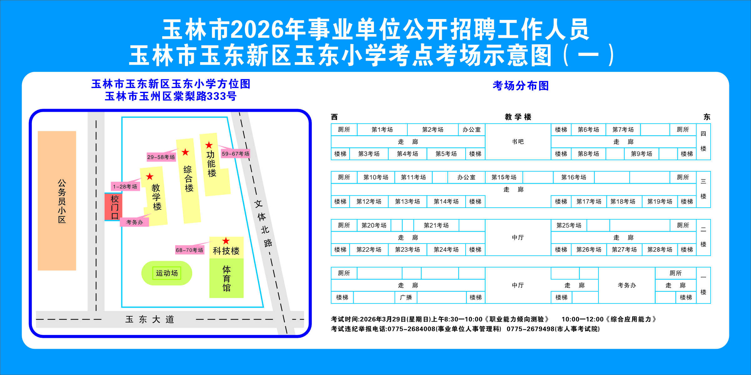 2.需要特別注意的是:玉林市第一職業(yè)中等專業(yè)學(xué)??键c是設(shè)在該校的東校區(qū)(人民東路東235號);玉林市第一中學(xué)考點分為運嶺路校區(qū)(二環(huán)北路1228號)、大北路校區(qū)(大北路453號)。